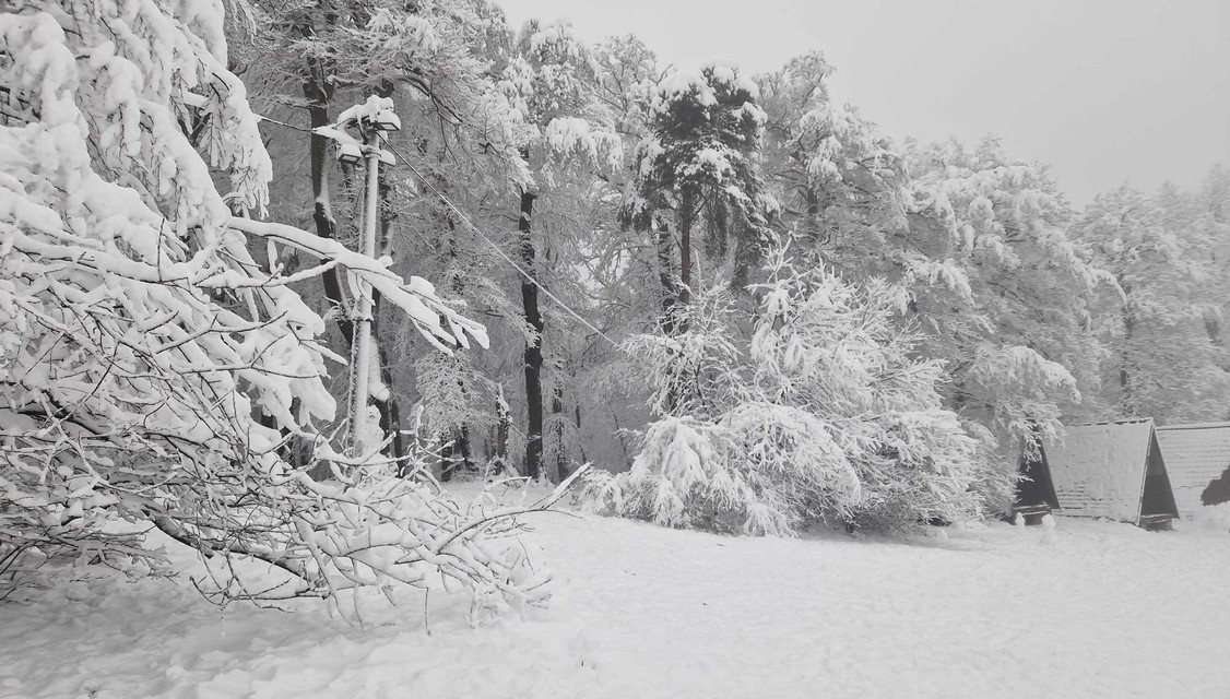 Mokrý sneh lámal stromy.
