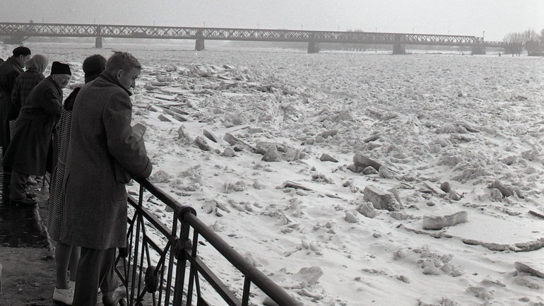 Dunaj zamrzol aj vo februári 1963. "Pracovníci vodohospodárskej organizácie Dunaj-Váh v Bratislave venujú v týchto dňoch zvýšenú pozornosť situácii na vodných dielach a hlavne na Dunaji. Na Dunaji sledujú množstvo ľadovej prikrývky, jej hromadenie a pod. Situáciu na čs. úseku Dunaja zisťujú stále nočné i denné hliadky a na najnebezpečnejších úsekoch od Bratislavy po Štúrovo rádiové hliadky, ktoré v prípade nebezpečia zátop upozornia štáb protipovodňovej komisie KNV," uvádza dobová popiska k fotografiám TASR.