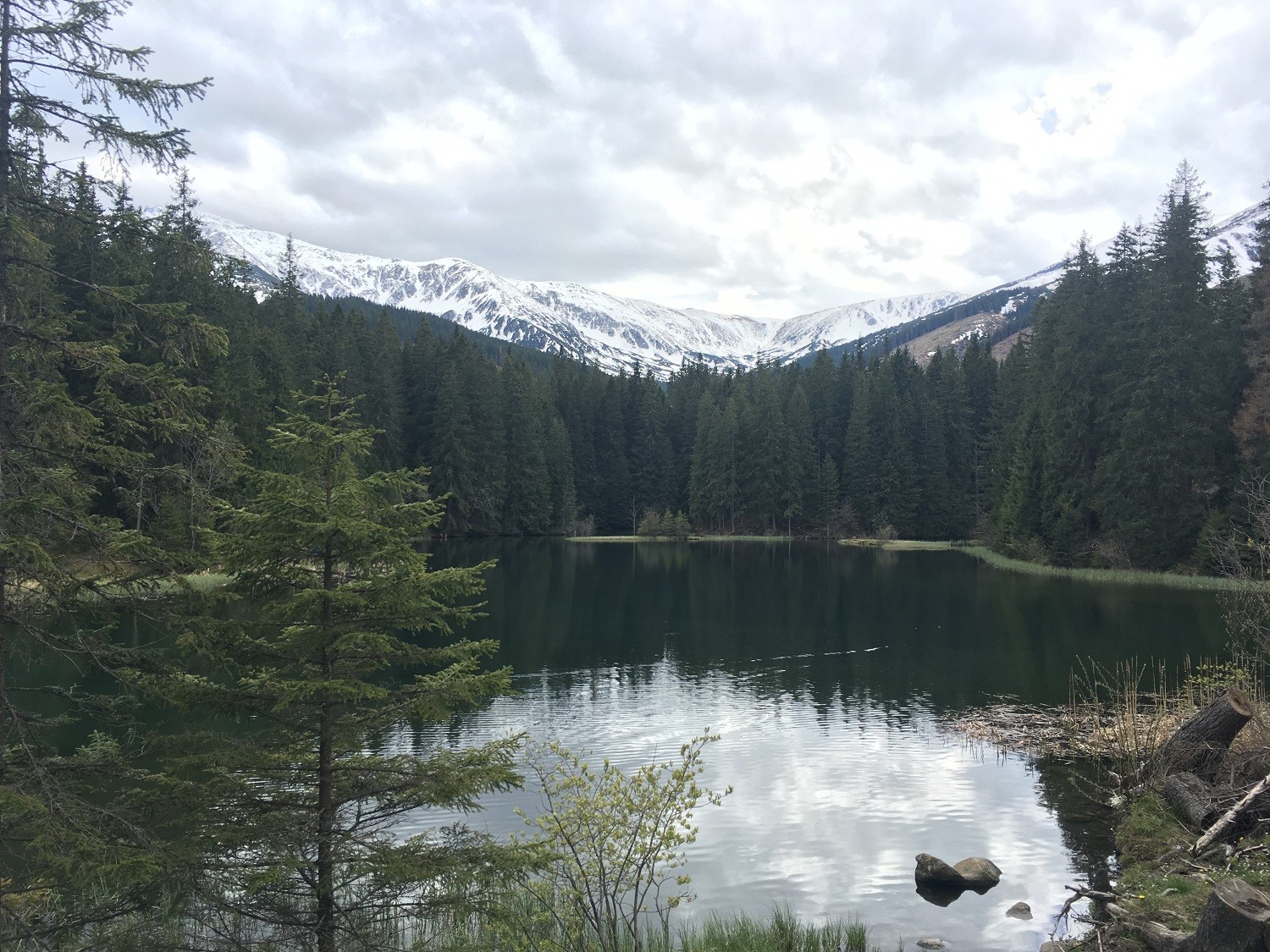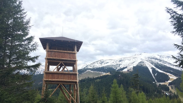 Náladu nám zlepšila ďalšia malá túra, tentoraz na vrch Ostredok s peknou turistickou rozhľadňou, ktorá sa začína kúsok od Vrbického plesa. Pravdepodobne nepatrí k najvyhľadávanejším túram, ľudí tu bolo pomenej. Trošku sme sa báli, či prázdne miesto po turistoch nezaujmú medvede, ale, našťastie, na žiadneho sme nenatrafili. Z rozhľadne sa otvárajú pekné výhľady do okolia, najmä na protiľahlé končiare, na jar ešte stále zasnežené.