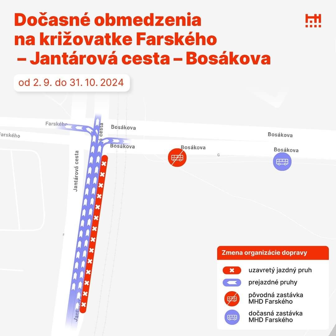 Autobusová zastávka Farského bude dočasné presunutá o niekoľko metrov ďalej v smere na Dolnozemskú cestu. Zrušený bude buspruh na Bosákovej ulici, ktorý bude slúžiť ako koridor pre peších.