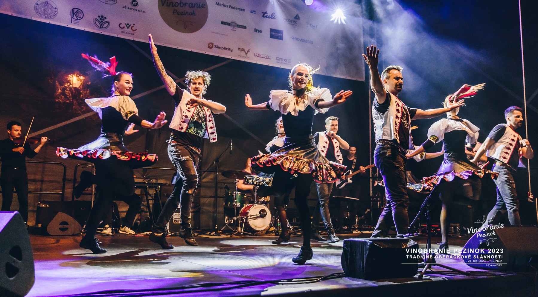 Vystúpenia hudobných, folklórnych, umeleckých či dychovkových skupín z Pezinka a okolia počas všetkých troch dní vinobrania si môžete vypočuť na pódiu v Zámockom parku.