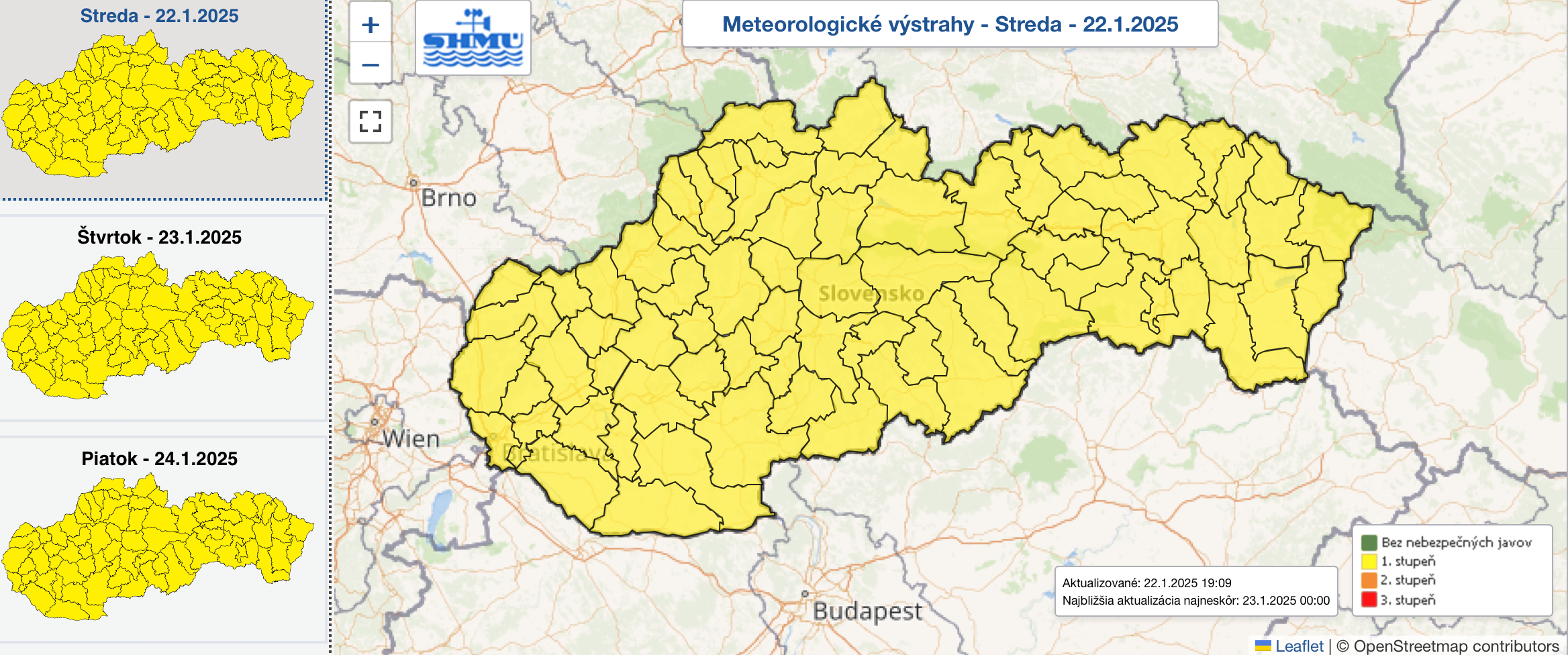 Na celom Slovensku naďalej platia výstrahy prvého stupňa pred poľadovicou. Počítať s ňou treba aj vo štvrtok (23. 1.).