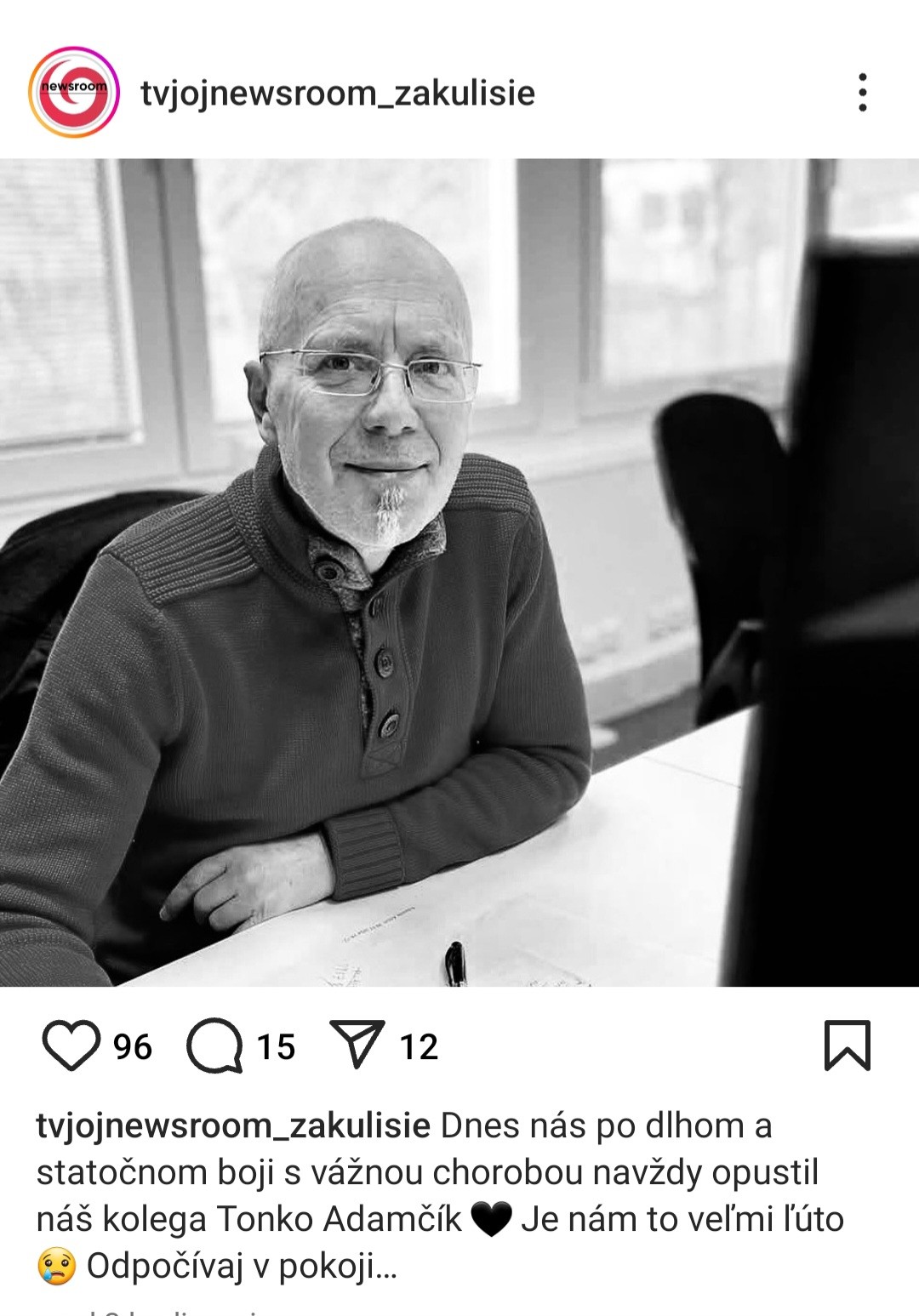 "Po dlhom a statočnom boji s vážnou chorobou nás navždy opustil dlhoročný redaktor spravodajstva Televízie JOJ Anton Adamčík. Informáciu zverejnila na svojom profile na Instagrame moderátorka Alena Stračiaková," uviedla Televízia JOJ na svojom webe.