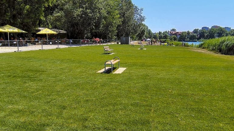 V Petržalke pri Veľkom Draždiaku v blízkosti bufeta Barracuda už vysadili 1000 m² trávnika – od novej studne pred bufetom Barracuda až po prezliekaciu kabínku, teda bližšie k jazeru.