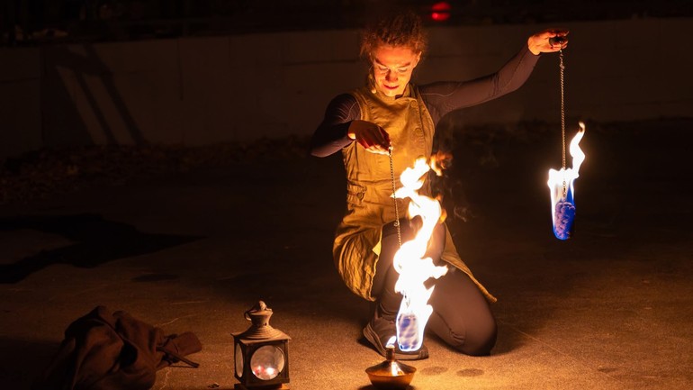 Na pódiu sa predstaví i artistka, vzdušná akrobatka, herečka-performerka Helena Škovierová v autorskom diele Kaleidoskop. „Vizuálne a hudobne silné predstavenie pomáha zodpovedať otázku, či človek bez umenia stráca kus duše,“ dodávajú organizátori k profesionálnemu vystúpeniu v hudobnom sprievode Borisa Čellára. Autorkou a dizajnérkou ústredného umeleckého objektu - kaleidoskopu, je Katarína Komara.