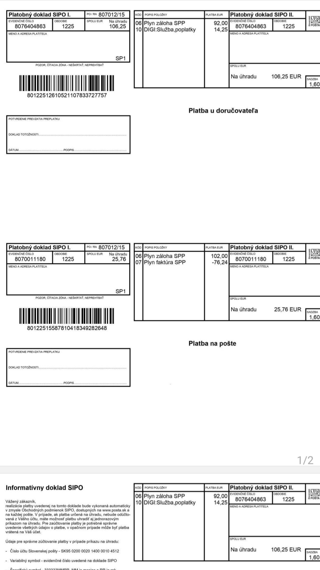 Podľa Slovenskej pošty po novom budú všetky doklady SIPO v čiernobielom vyhotovení vo formáte A5. Typ dokladu, resp. spôsob úhrady bude jasne a výrazne označený textom.