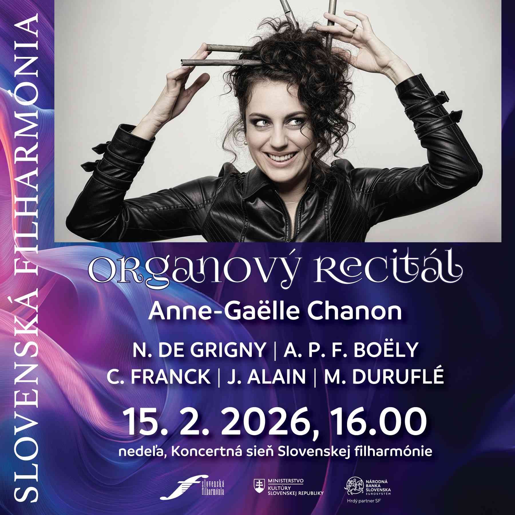 V nedeľu 15. februára 2026 pokračujeme organovým recitálom v Koncertnej sieni SF. Hostkou víkendového popoludnia bude Anne-Gaëlle Chanon, titulárna organistka Temple Neuf v Metz, ktorá vzdá hold významným francúzskym skladateľom a organistom, ktorých tvorbu na našich pódiách počujeme zriedka.