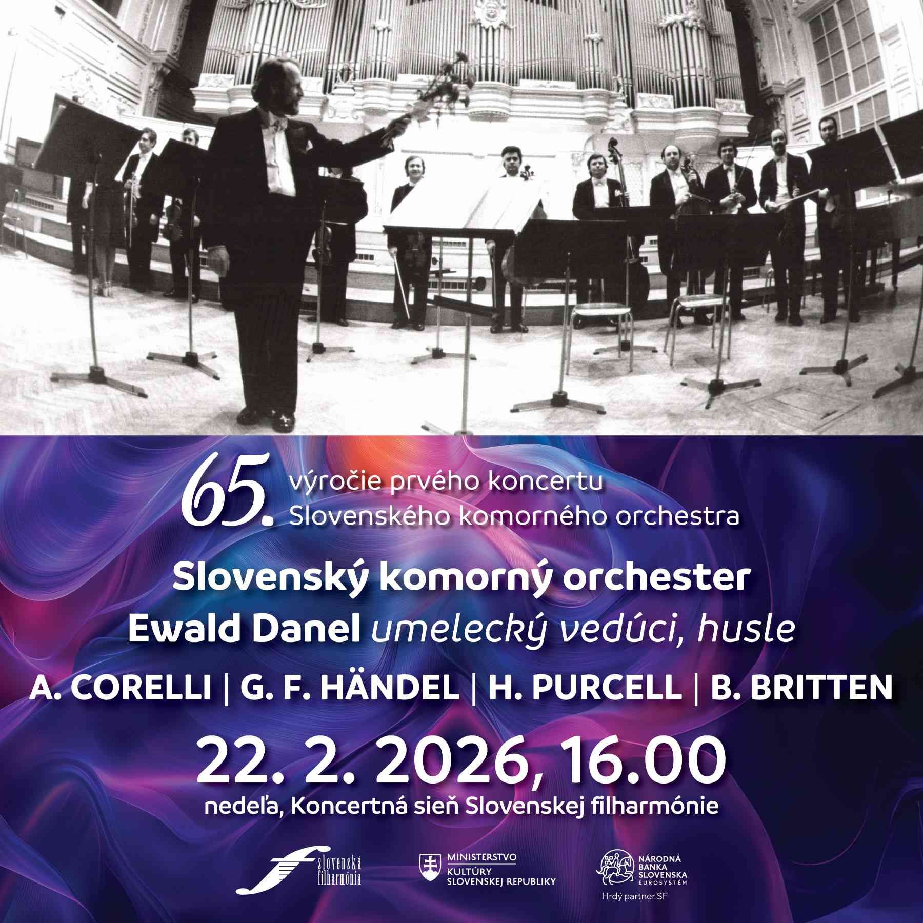 V abonentnom cykle Slovenského komorného orchestra teleso oslavuje svoje 65. jubileum: v októbri 2025 zaznel koncert k výročiu založenia orchestra. V nedeľu 22. februára 2026 si pripomenieme výročný deň jeho historicky prvého verejného koncertu. Program je identický s programom, ktorý odznel 22. februára 1961 v Dome osvety, Bratislava-Nivy pod vedením Bohdana Warchala.
