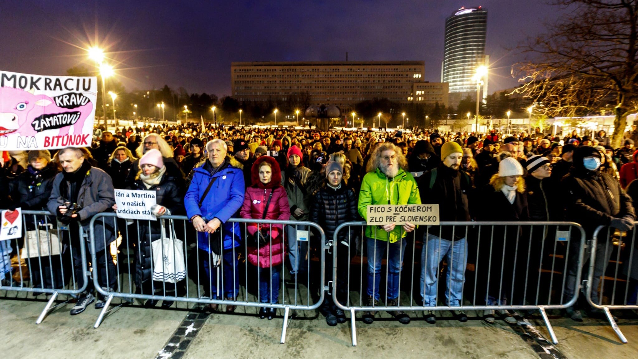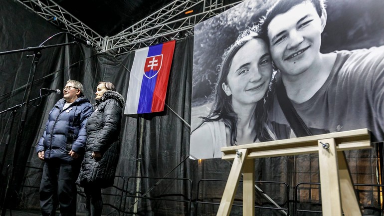 Jozef Kuciak a Jana Kuciaková, rodičia zavraždeného novinára Jána Kuciaka,na zhromaždení pri príležitosti ôsmeho výročia vraždy novinára Jána Kuciaka a jeho snúbenice Martiny KušnírovejNa bratislavskom Námestí slobody sa v sobotu večer konalo zhromaždenie pri príležitosti ôsmeho výročia vraždy novinára Jána Kuciaka a jeho snúbenice Martiny Kušnírovej. Podujatie zorganizovala iniciatíva Za slušné Slovensko.