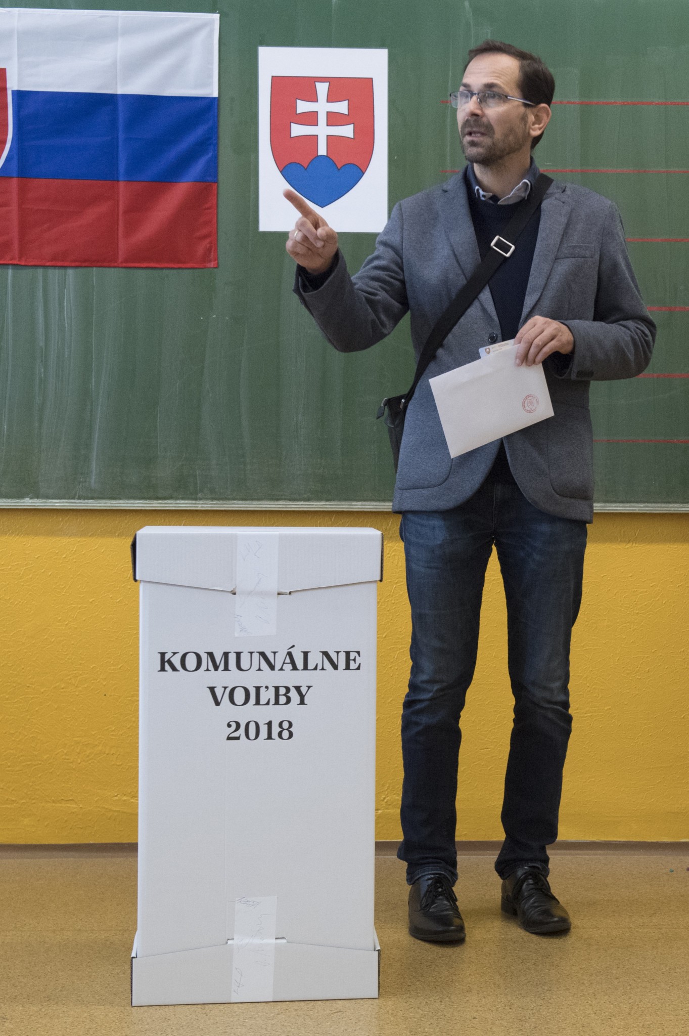 FOTO: Primátorský kandidát Ján Mrva volil "doma" - vo Vajnoroch
