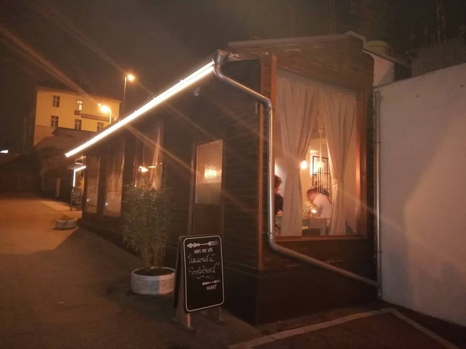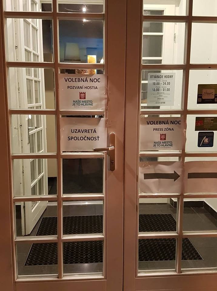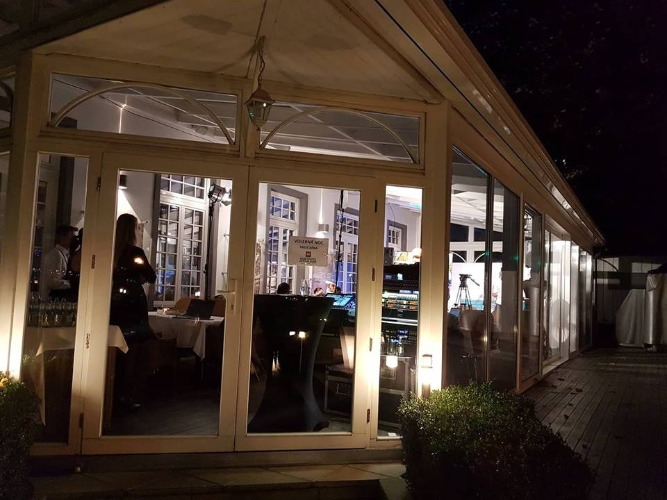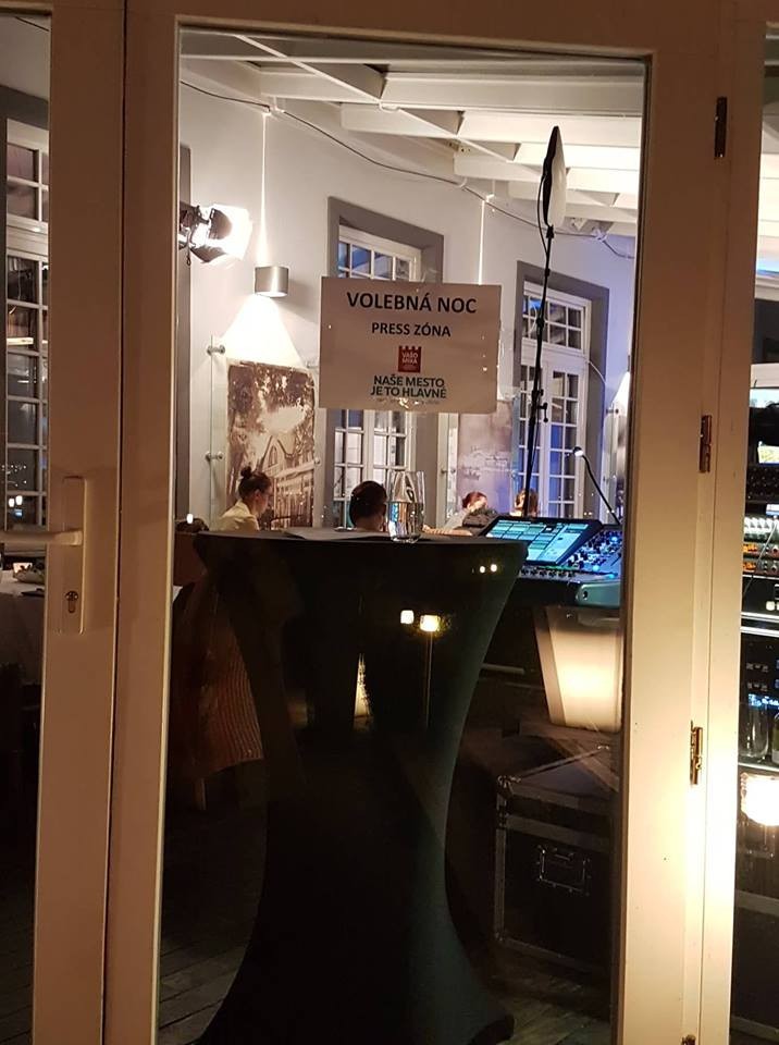 20:58 výhľad z volebnej centráli Václava Miku z Aucafé na volebnú centrálu Iva Nesrovnala