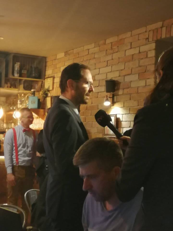 21:47 Volebná centrála Václava Miku: novinárov pustili do reštaurácie, aby mohli vidieť prichádzajúcich hostí: