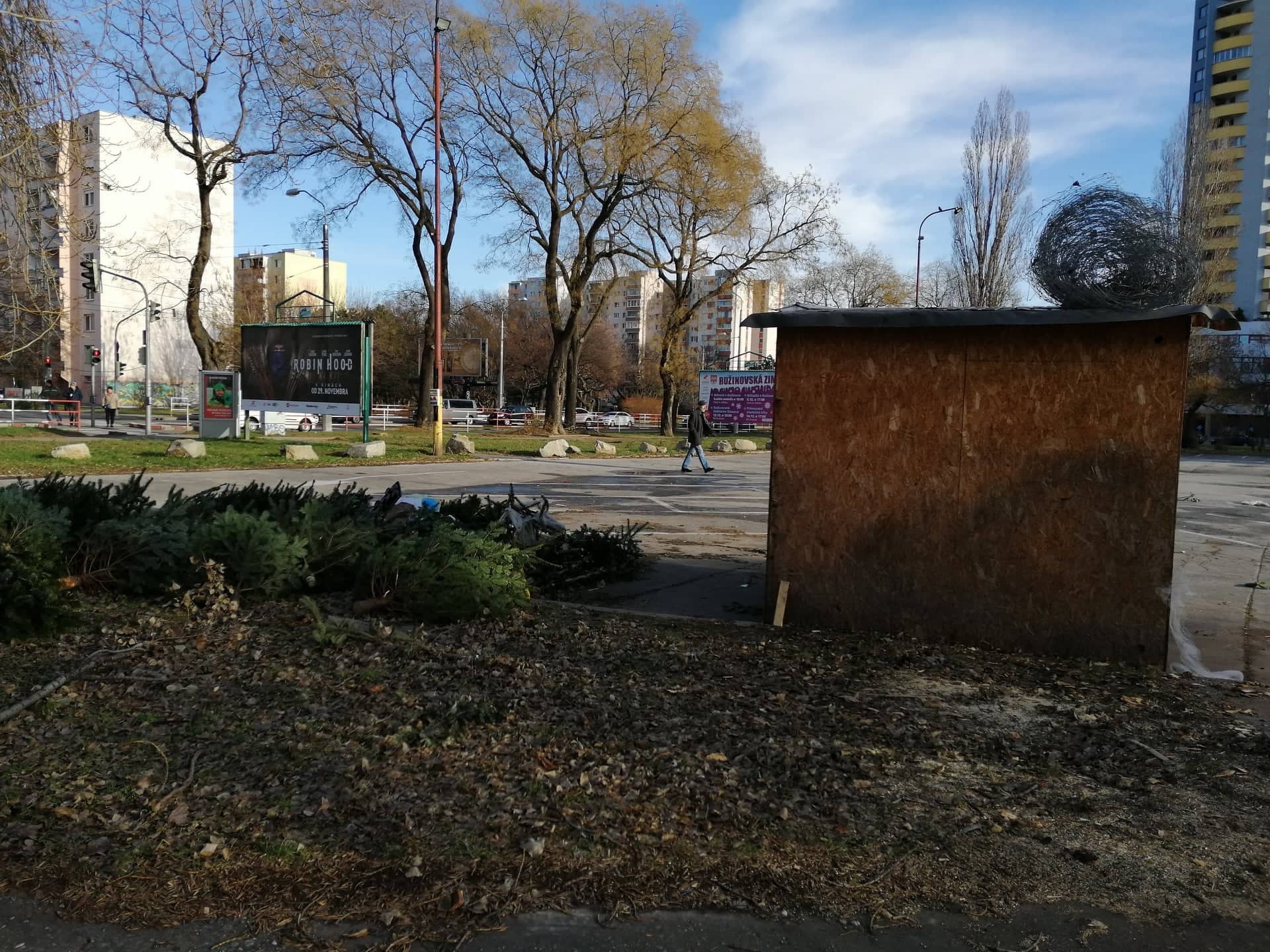 Ako prvý sme navštívili trh na Miletičke. Na predajnom mieste ešte stojí búdka a okolo nej sú porozhadzované stromčeky, na ktoré sa už začínajú zhromažďovať aj odpadky. Celkový pohľad nebol veľmi estetický.
