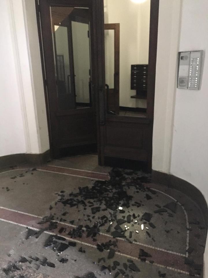 Takto to vyzeralo krátko po výbuchu pred jedným z domových vchodov...