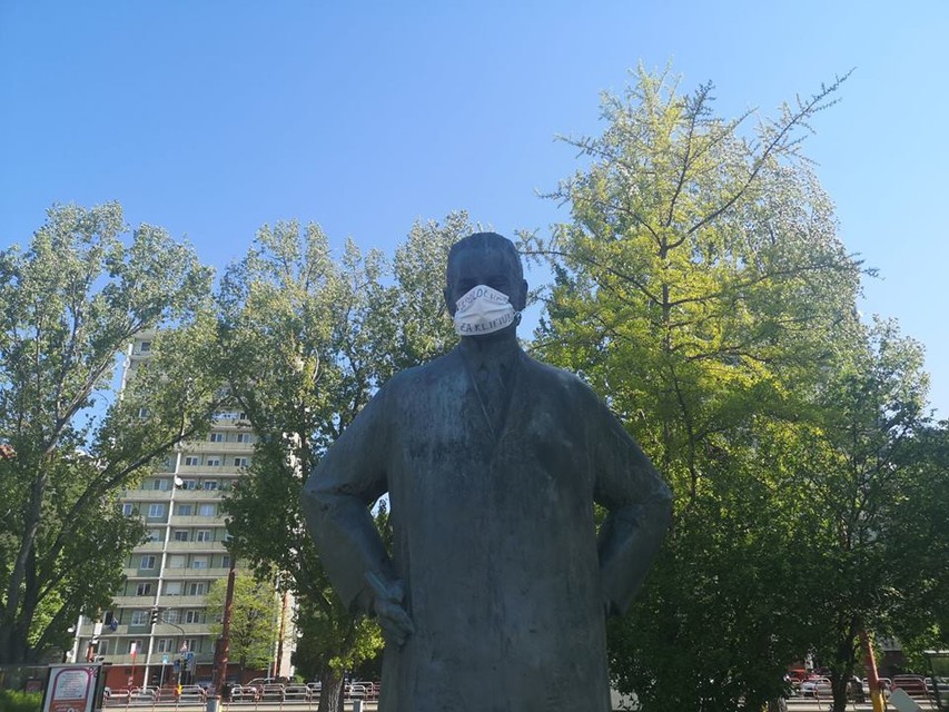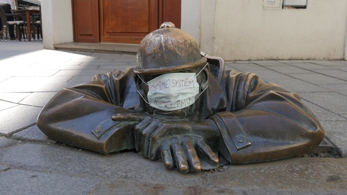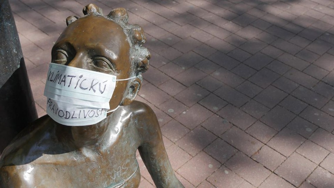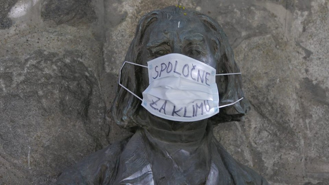 "Práve dnes sa na mnohých sochách v Bratislave objavili rúška, ktoré upozorňujú na klimatickú krízu ako na jeden z najzávažnejších a najkomplexnejších problémov súčasnosti. Mnohí politici a političky či ľudia, ktorí majú moc meniť veci, však klimatickým zmenám a hroziacemu environmentálnemu kolapsu nevenujú dostatočnú pozornosť. Považujeme preto za dôležité robiť všetko preto, aby sa zo záchrany klímy stala prvoradá politická priorita," uvádza facebooková stránka Bod obratu, ktorá združuje ľudí bojujúcich za záchranu klímy.
