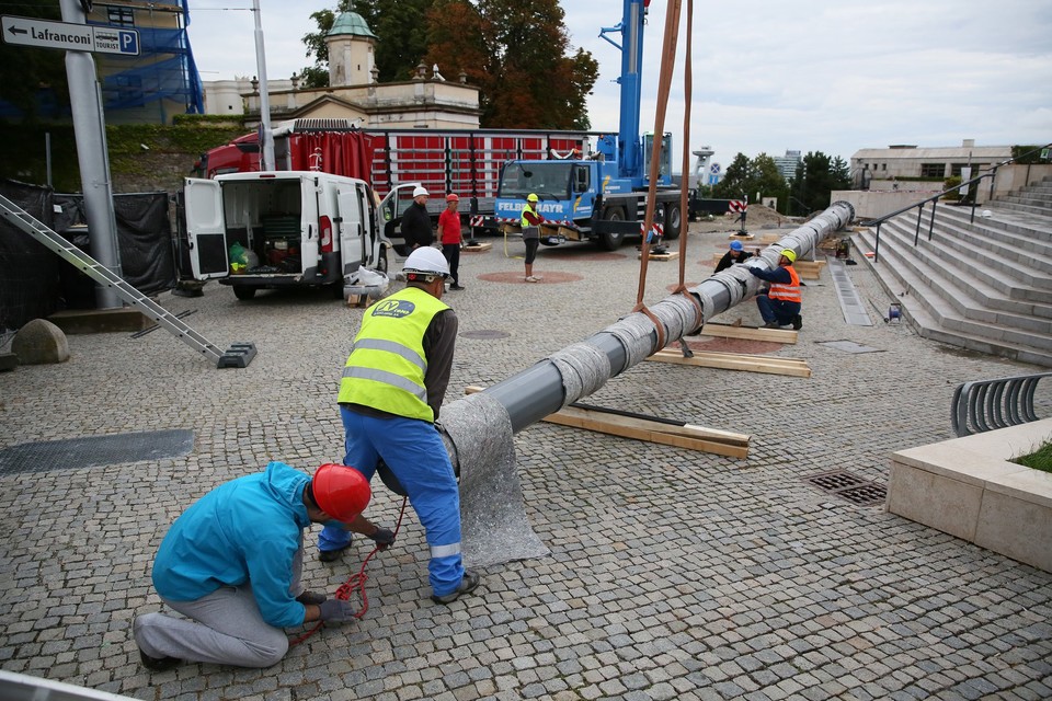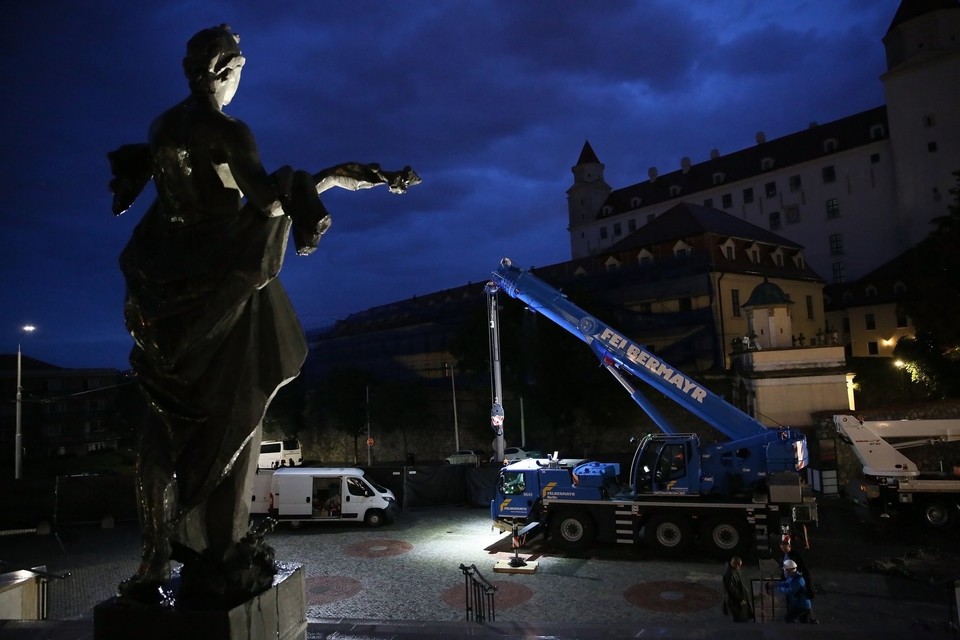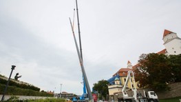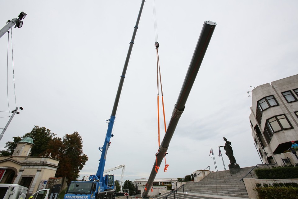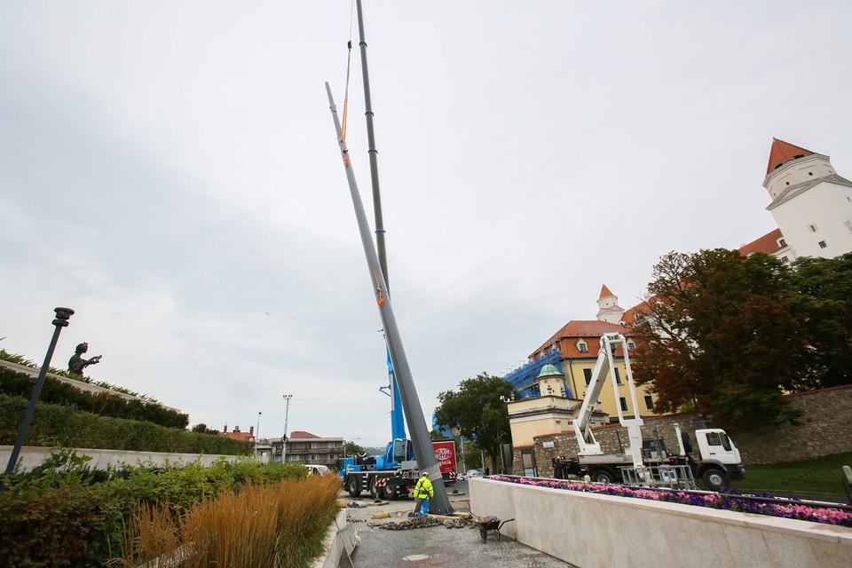 FOTO: Pred budovou parlamentu vztýčili 30-metrový stožiar - zmení navždy panorámu Bratislavy?