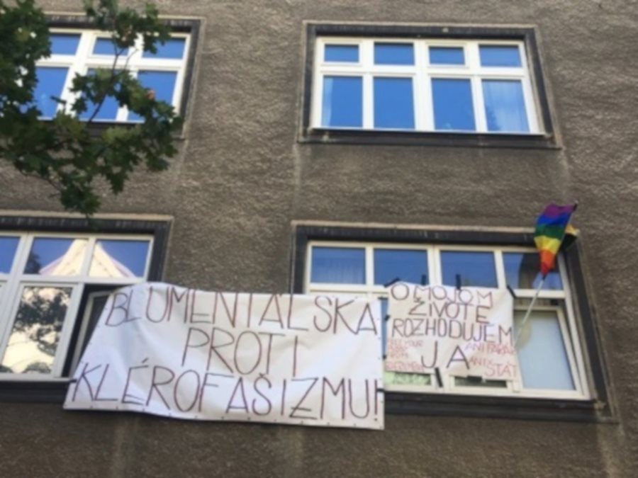 Tieto transparenty vystavené v oknách svedčia o tom, že nie všetci majú na iniciatívu KBS rovnaký názor...