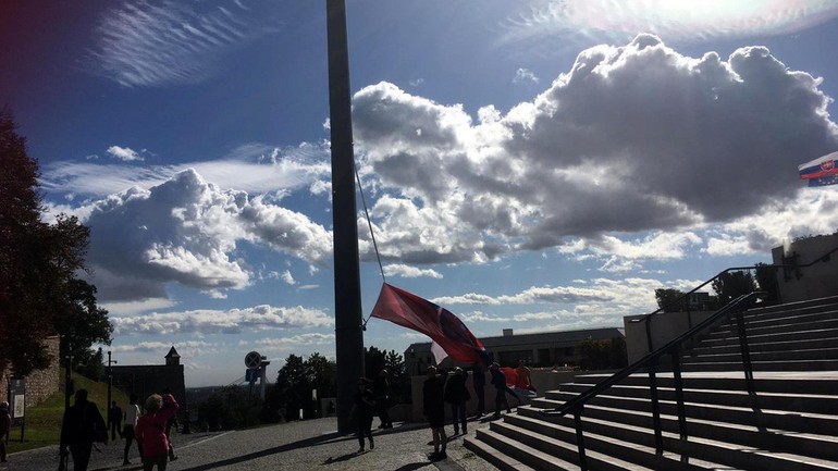 Na tomto dnešnom zábere je už stožiar bez vlajky. Podľa najnovších, ale neoficiálnych informácií z NR SR vraj vlajka nebola poškodená a dali ju dole preventívne...