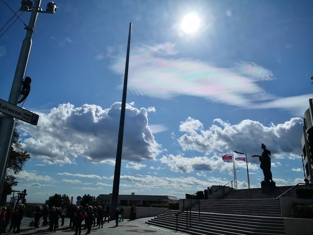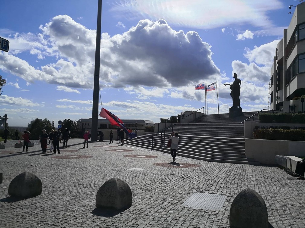 Bratislavské noviny sa pokúšali spojiť s riaditeľom odboru komunikácie s médiami a verejnosťou Kancelárie NR SR - Mgr. Art. Tomášom Kostelníkom, ale jeho služobný mobil bol momentálne nedostupný. Faktom je, že stožiar pred parlamentom má za krátky čas svojej existencie dosť búrlivý "život". Krátko po tom, ako ho postavili, doň udrel blesk a štátnu zástavu, ktorú tu slávnostne vztýčili 1. septembra 2019 pri príležitosti Dňa ústavy dnes roztrhal vietor a museli ju zvesiť...