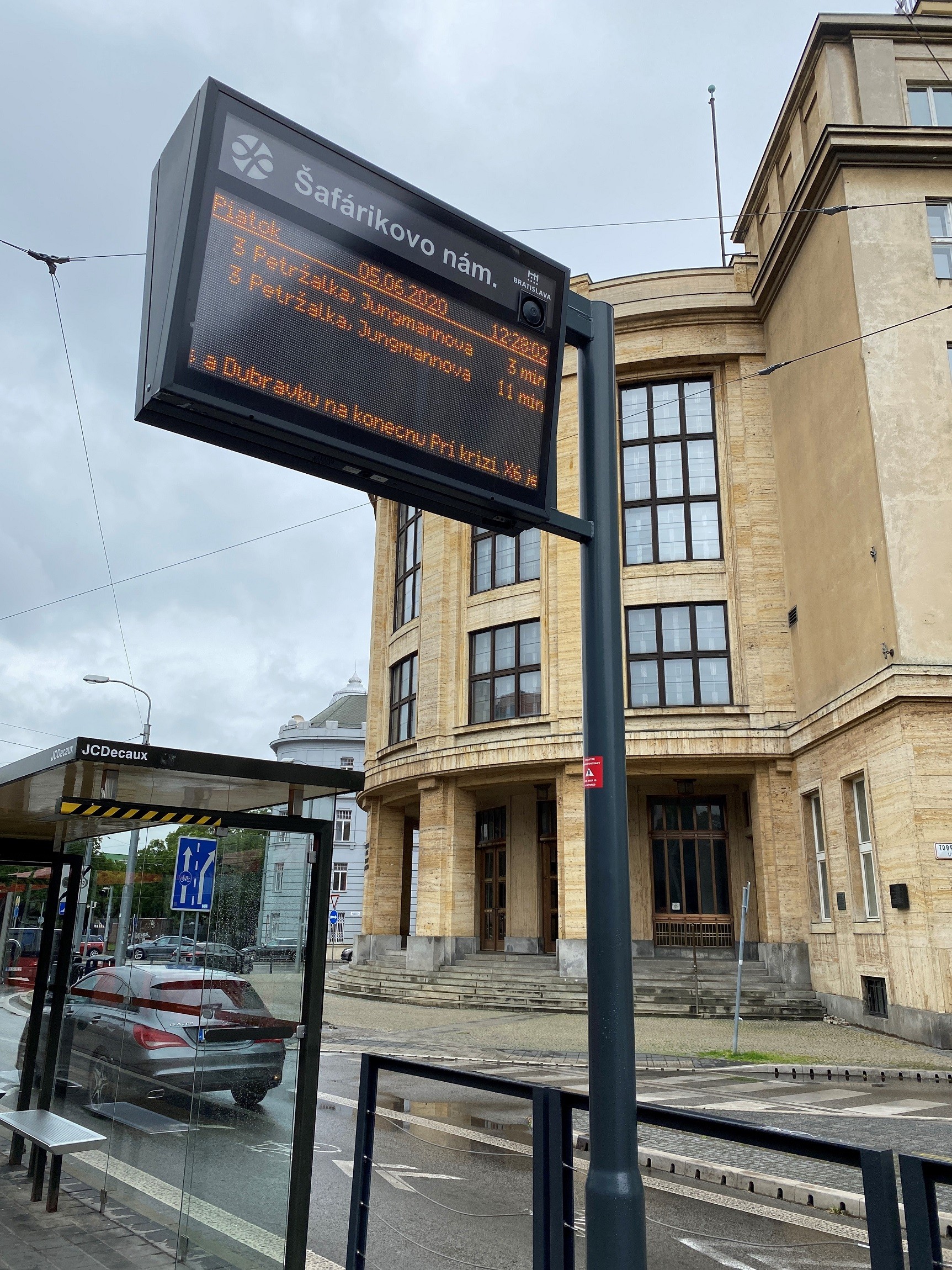 Informačná tabuľa na zastávke Šafárikovo námestie