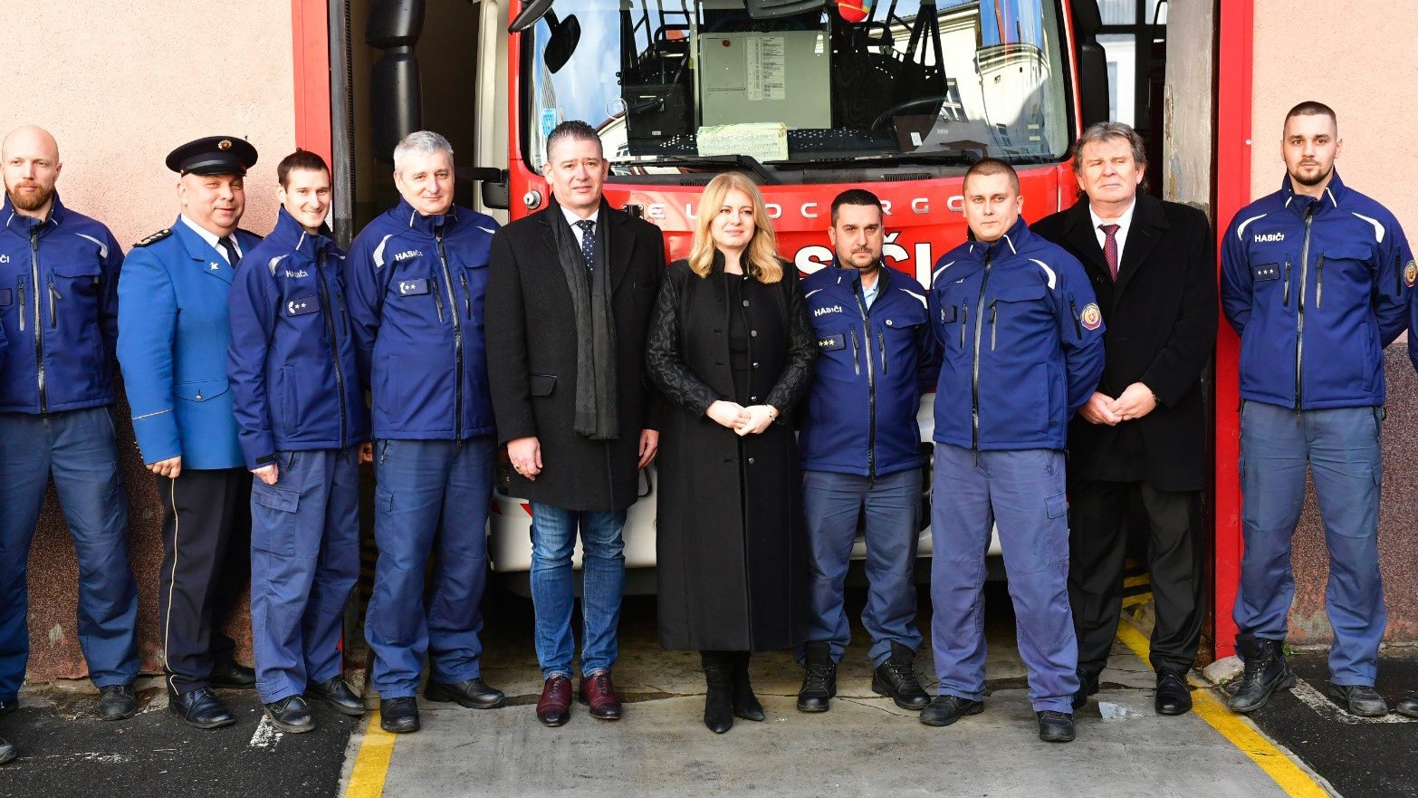 Prezidentka na návšteve hasičov. Vedľa nej minister vnútra Roman Mikuláš.