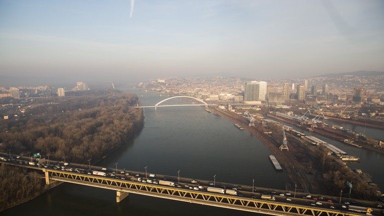 Na Prístavnom moste v Bratislave v smere z Petržalky do Ružinova sa v ľavom pruhu zrazili štyri autá. Informuje o tom Zelená vlna RTVS na sociálnej sieti.
