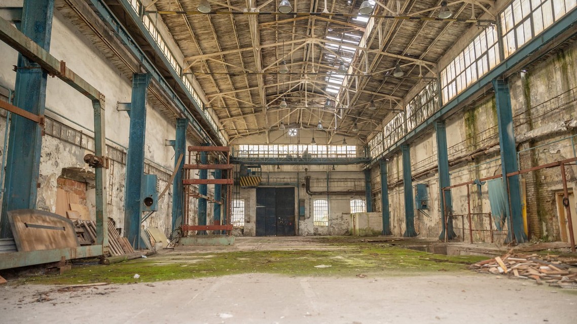 Súčasný stav interiéru starej továrne.