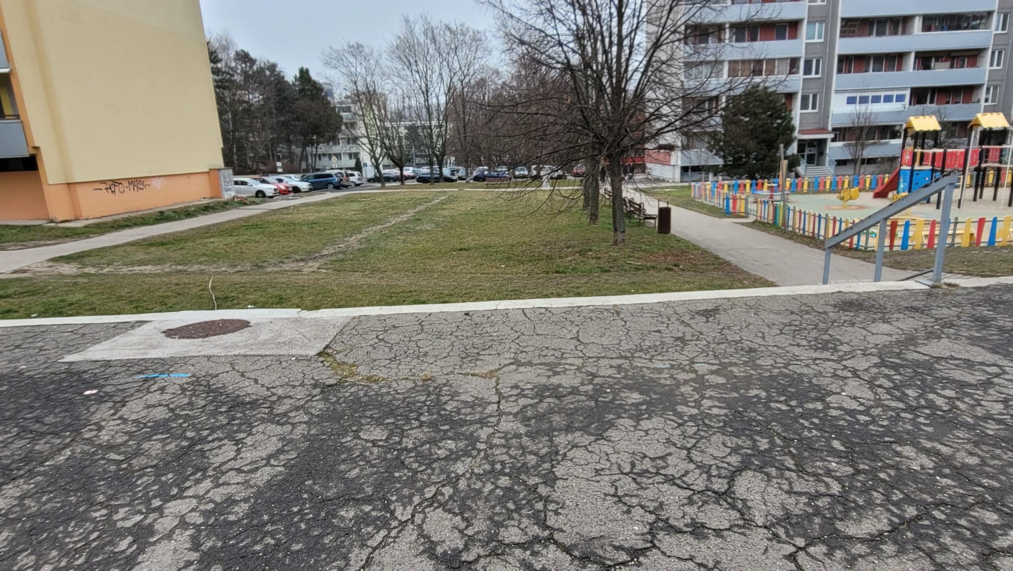 V smere k ulici Ľuda Zúbka pri bytovom dome sa má upraviť tvar chodníka a v blízkosti bytového domu vznikne, po odstránení spevnenej asfaltovej plochy, nový zelený priestor s nízkym porastom.