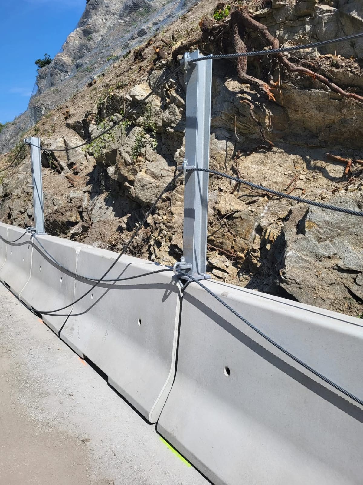 Na skale osadili oceľové ochranné siete, pri vozovke je postavená mobilná bariéra.