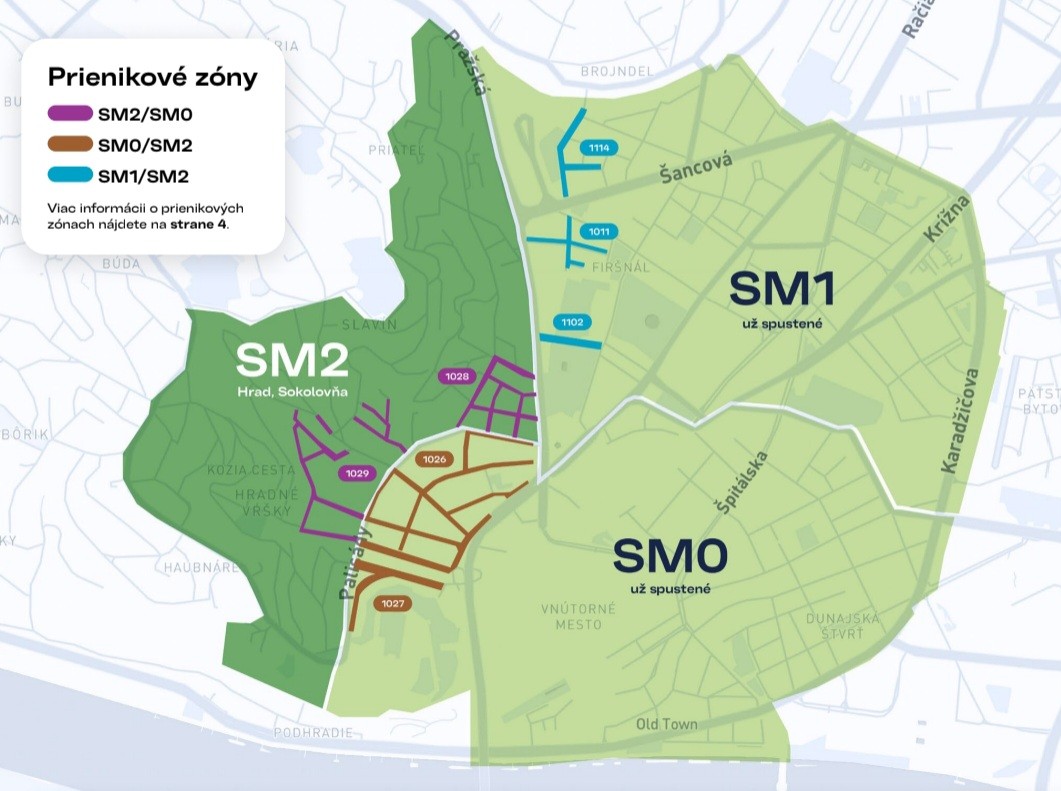 Samospráva tým nadviaže na už zavedené zóny SM0 - Panenská a SM1 - Blumentál. Obyvatelia bývajúci na hraniciach jednotlivých zón, teda SM2, SM0, SM1, budú môcť parkovať v okrajových uliciach susednej zóny po zakúpení rezidentskej parkovacej karty ako rezidenti.