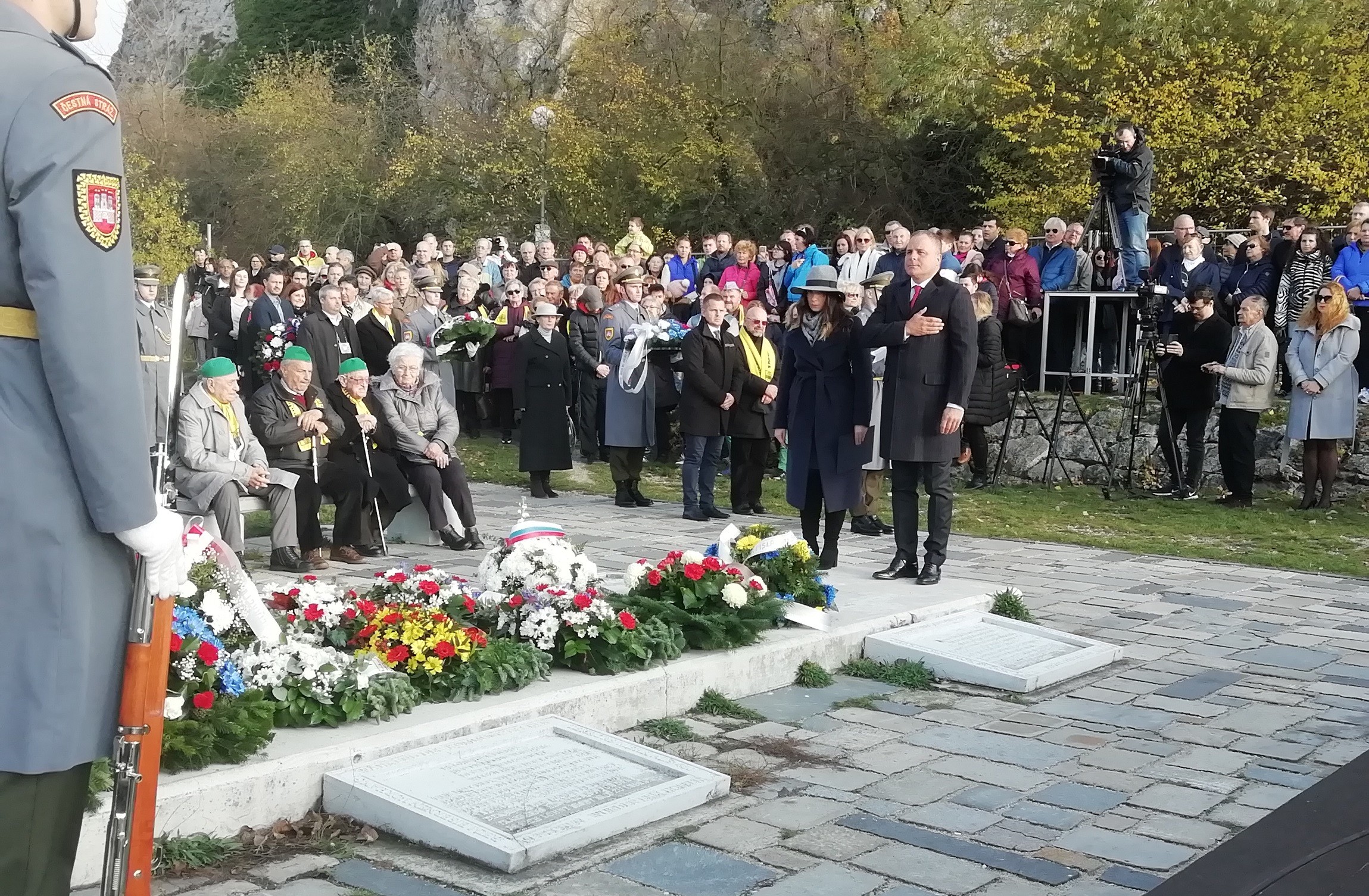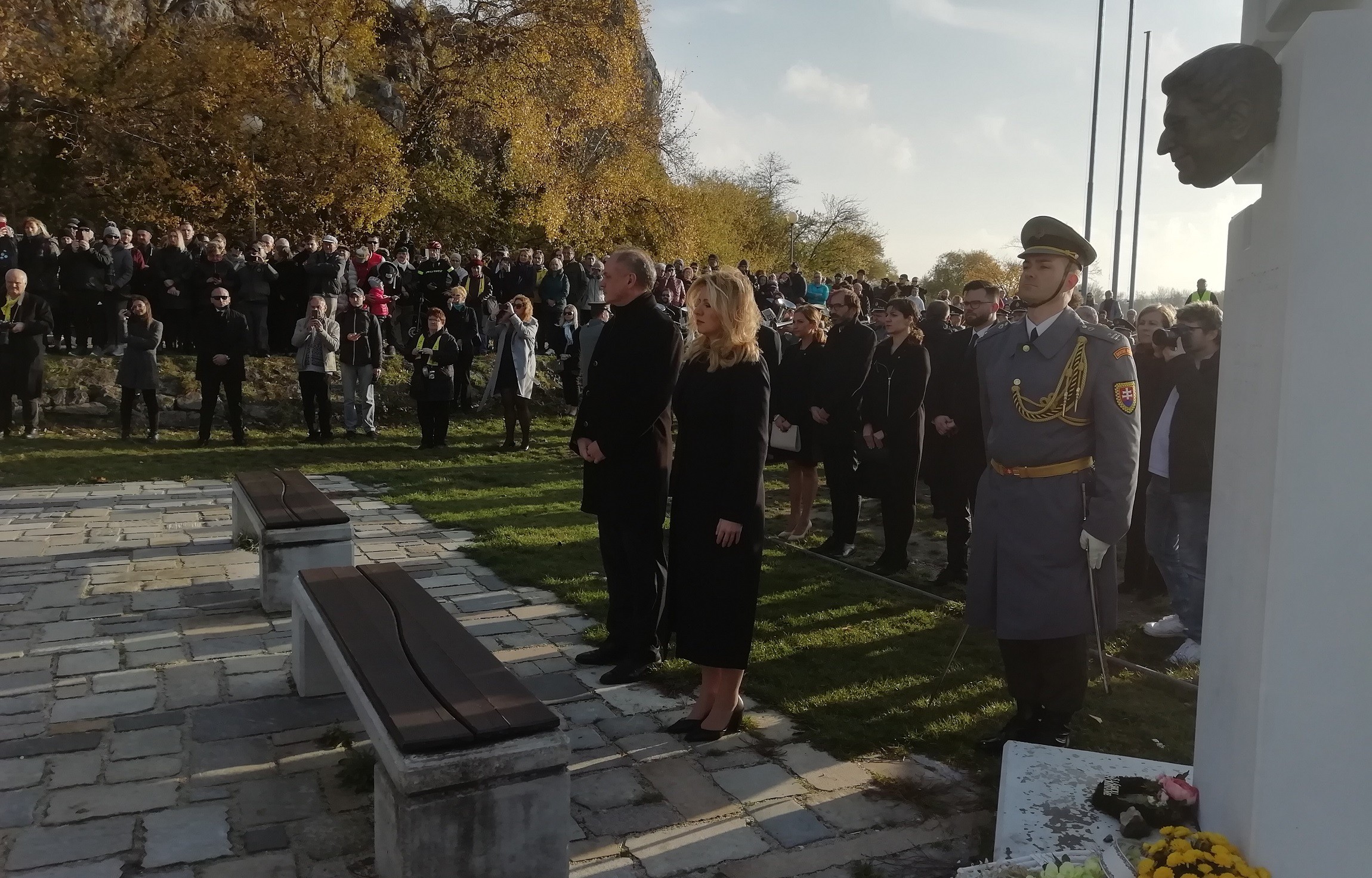 VIDEO (Zuzana Čaputová, Andrej Kiska a Gabriela Matečná kladú vence pri pamätníku Brána slobody):
