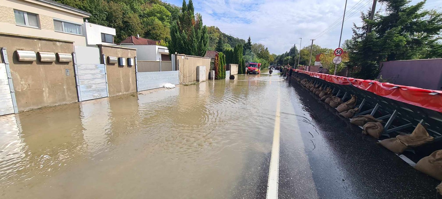Na niektorých nižšie položených úsekoch Devínskej cesty, napríklad v lokalite Zlaté schody, kde sa nachádzajú aj obytné domy, osadili protipovodňové zábrany. Ako však vidno na fotografii z dnešného rána, tie začali presakovať.