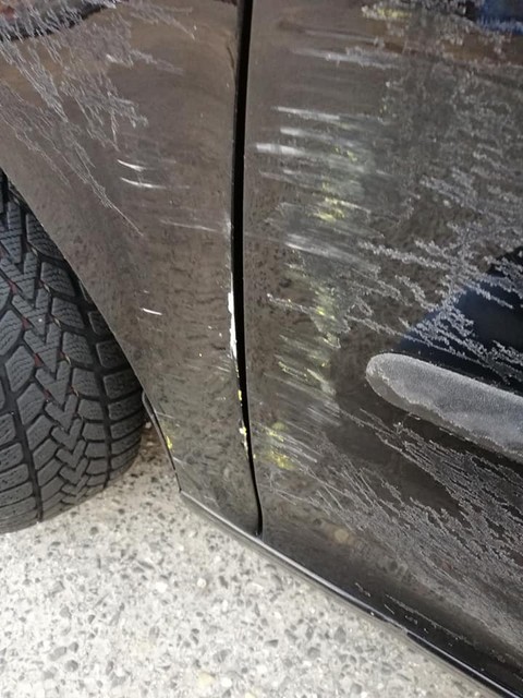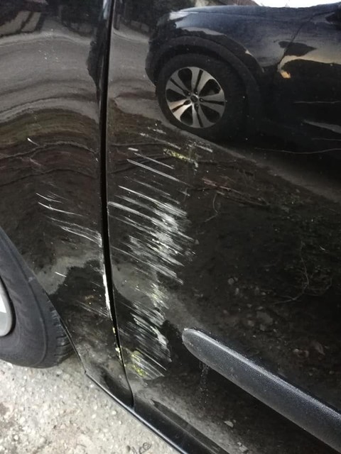 Minulú stredu 6. februára ju totiž čakalo pred domom nemilé prekvapenie. Jej auto bolo celé doškriabané, očividne poškodenie muselo nastať od ošuchnutia druhým autom. A ako môžete vidieť aj na obrázku, nie je to malý škrabanec, ale škoda zasahuje dosť veľkú plochu celej jedenej strany auta.