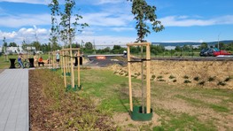 V okolí zároveň developer vybudoval chodník, osadil lavičky a inštaloval verejné osvetlenie. Vyhradený je tiež priestor pre skatepark. V areáli okrem toho vysadili 250 nových stromov, záhonov drevín.