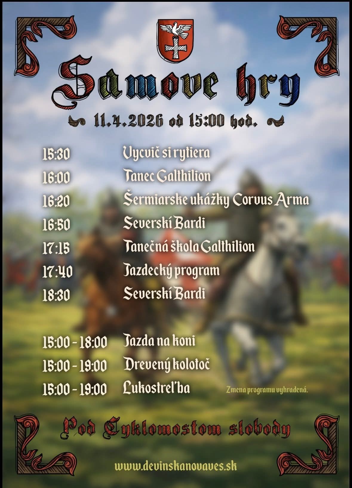 „Samove hry v Devínskej nesú odkaz na obdobie Samovej ríše - symbol jednoty, odvahy a spolupráce našich predkov. Každoročne pripomínajú historické korene regiónu, oživujú tradície a spájajú komunitu prostredníctvom kultúry, remesiel a bojového umenia,“ priblížila.