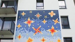 Komplex Dúbravy v bratislavskej mestskej časti Dúbravka tvorí 8 bytových domov. Developer sa rozhodil fasády domov vylepšiť netradičnými mozaikovými obrázkami. Niektorých tento čin milo prekvapil, iní ostali naopak zaskočení. V diskusii sa objavilo mnoho protichodných názorov. Niektorým obyvateľom sa mozaikové kresby zdajú príliš infantilné, iní si považujú obrázky za istú pomôcku pri neskoršej navigácii.