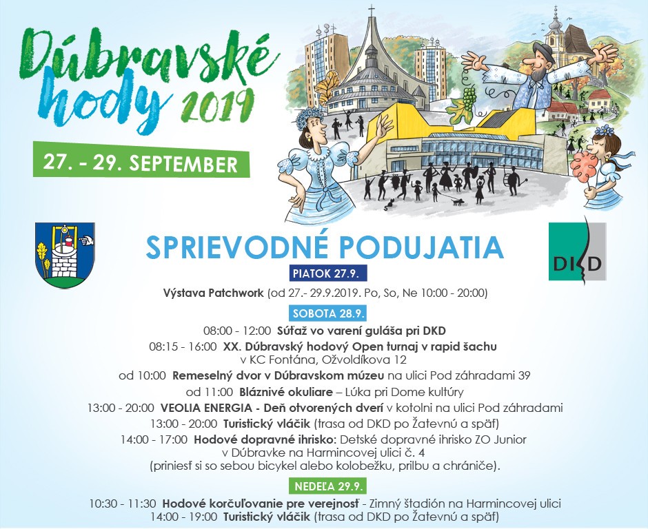 Dúbravské hody na tri dni zmenia život v mestskej časti. Oživia jej ulice a rôzne miesta, okrem hlavného programu prebehnú totiž aj mnohé sprievodné podujatia a akcie. Tradične sa konajú okolo sviatku Kozmu a Damiána a každoročne sú očakávané a navštevované. Tento rok Dúbravka na hody pozýva v dňoch od 27. do 29. septembra 2019.