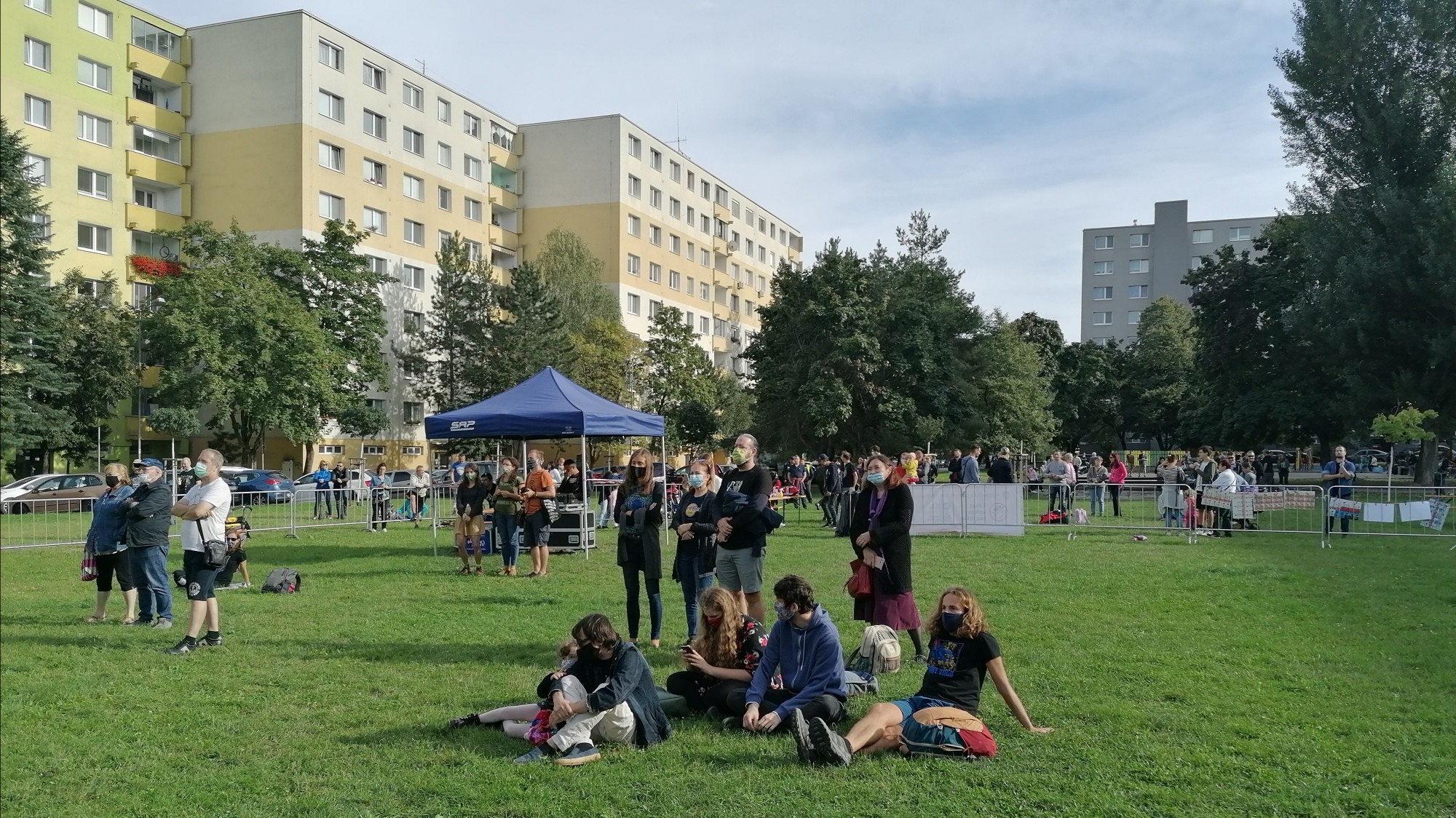 Priamo pod pódiom bol vstup možný iba v rúškach, preto mnohí ľudia ostali radšej za ohradeným priestorom. Neskôr večer sa park i priestor pod pódiom zaplnil.