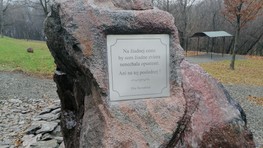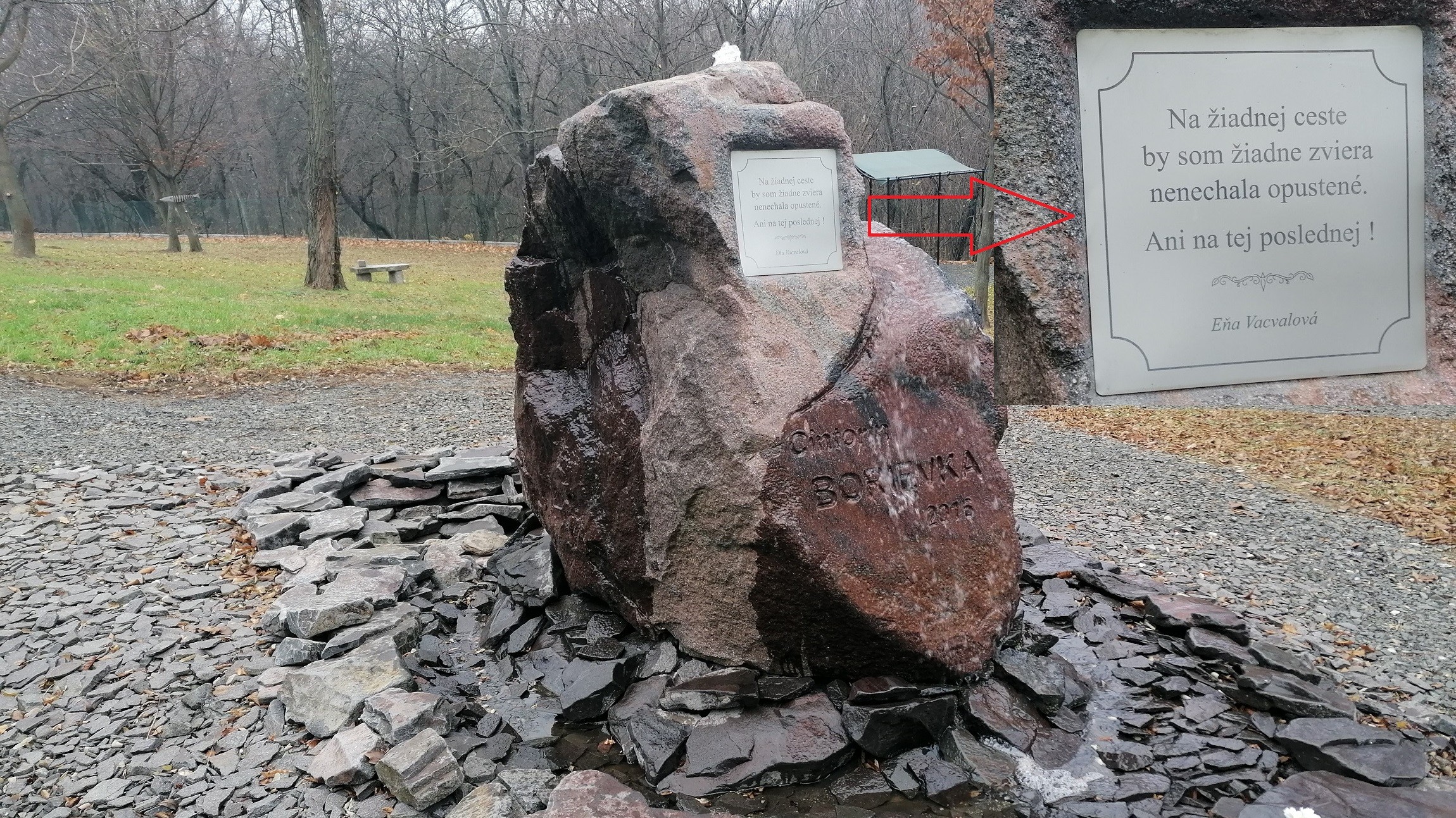 "Na žiadnej ceste by som žiadne zviera nenechala opustené. Ani na tej poslednej." Cintorín zdobí kameň s citátom Eni Vacvalovej.