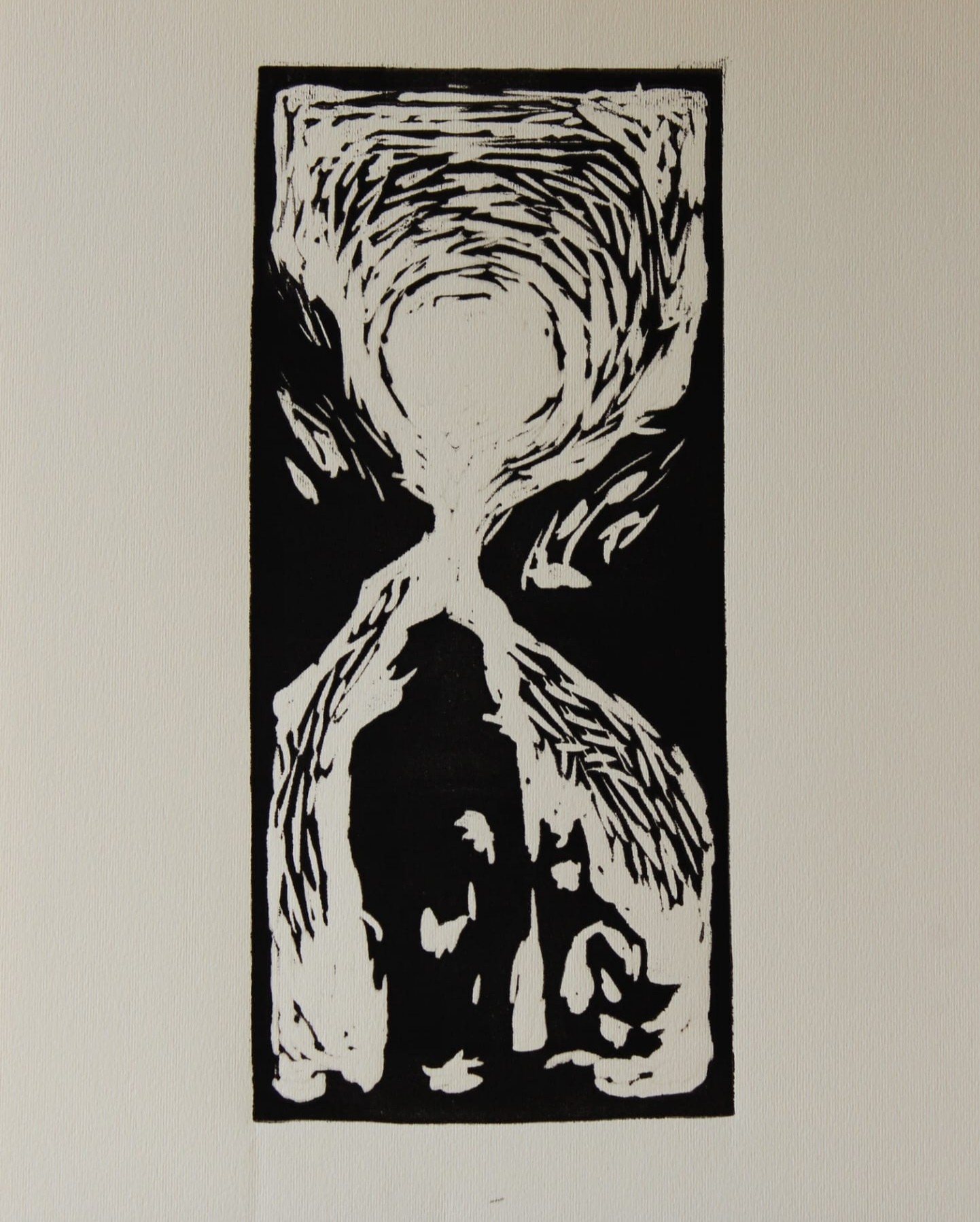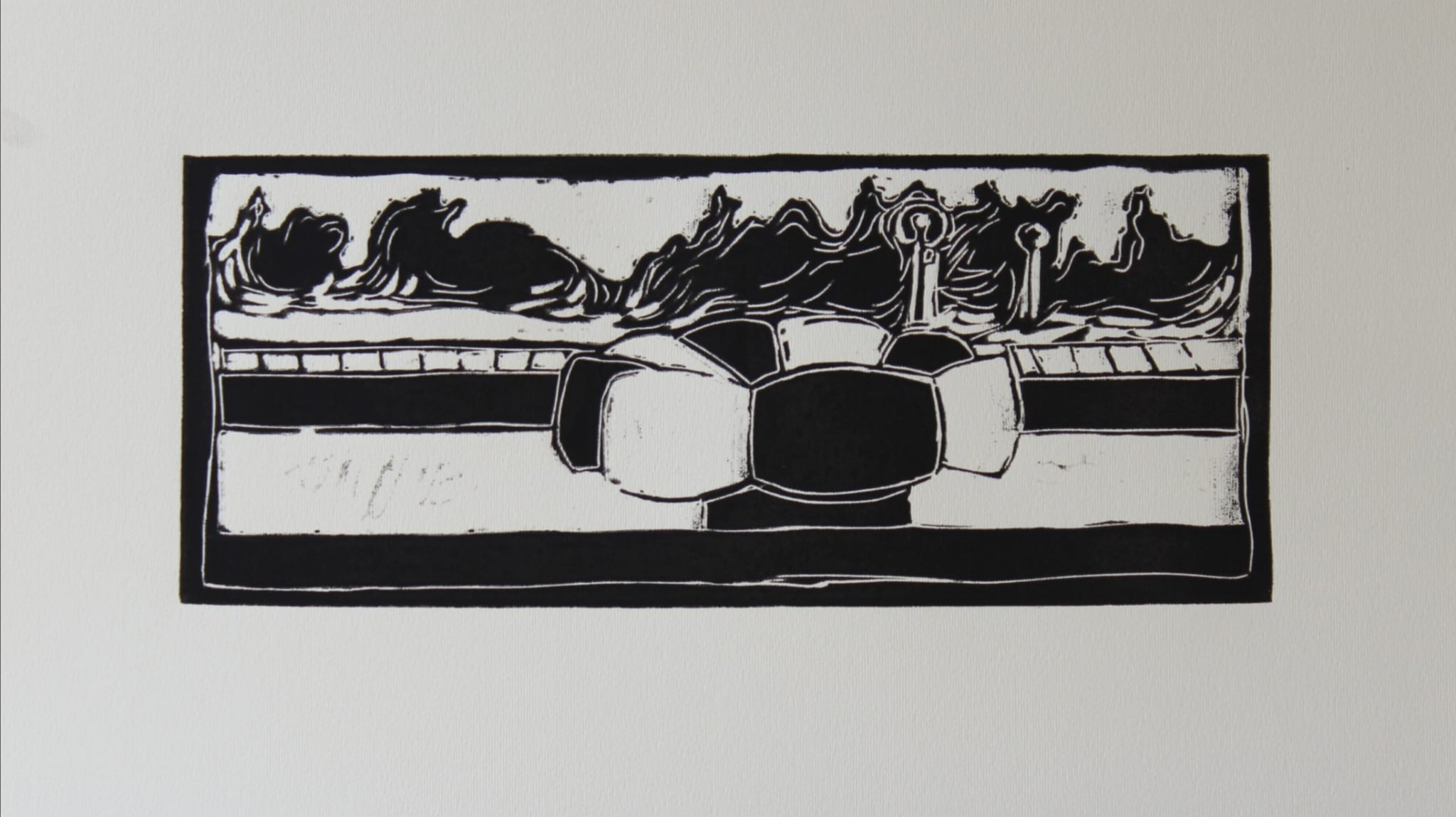 Čierno-biely linoryt študentky Hany Belohorcovej.