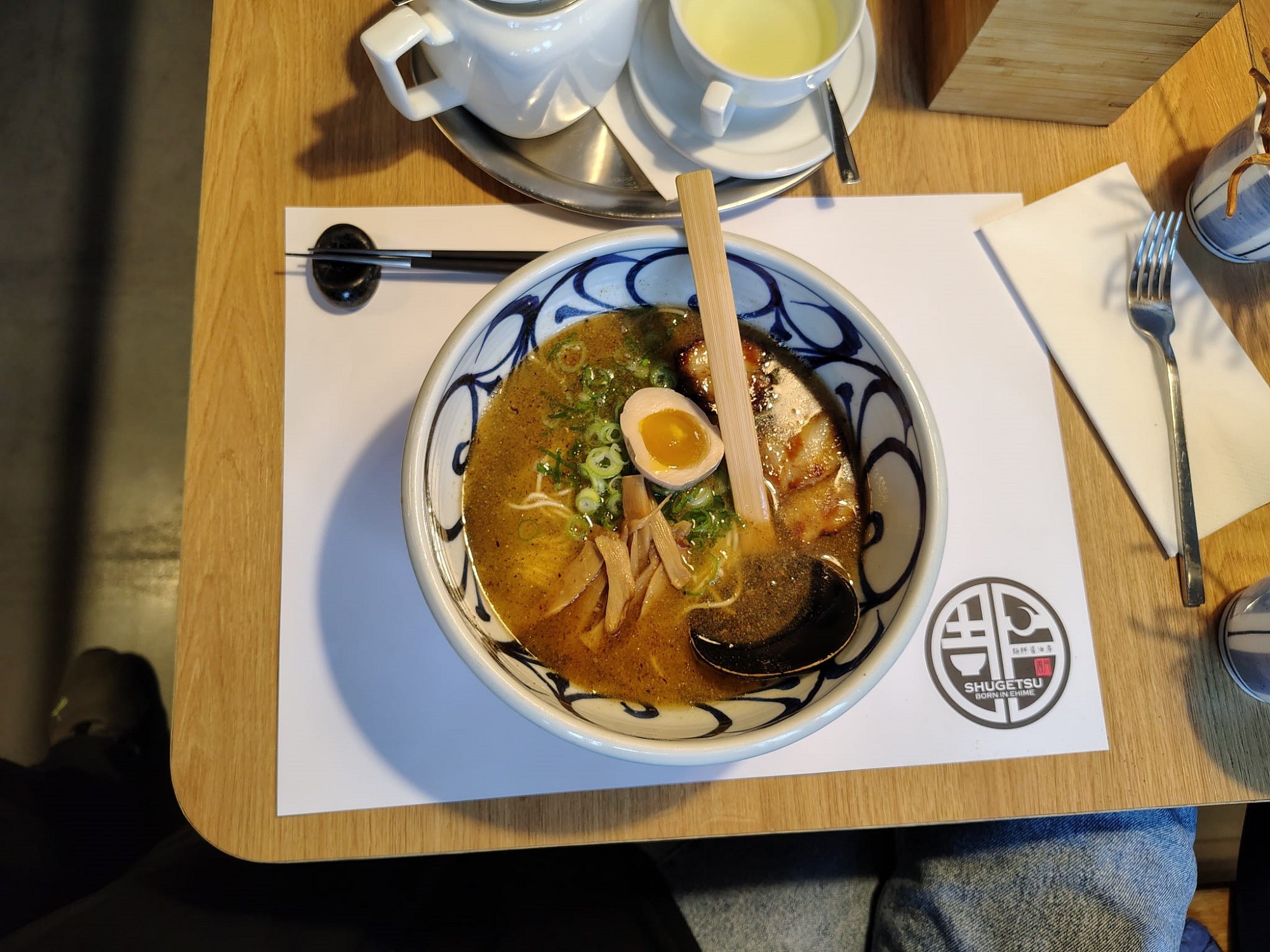 Páčilo sa nám, že jednotlivé súčasti tsukemenu boli od seba oddelené, mohli sme si sami určiť, akú intenzitu miso polievky chceme cítiť. Domáce rezance boli perfektné chuťovo, štruktúrou aj konzistenciou, už len pre ne sa sem oplatí prísť. Vývar, v ktorom bol aj jemný rybací prášok, chutil priam famózne, vynikajúce boli tiež kúsky grilovaného bôčika a bambusu. Čím viac sa zmenšoval objem polievky, tým výraznejšie sme cítili chuť umami. Bola to topka.