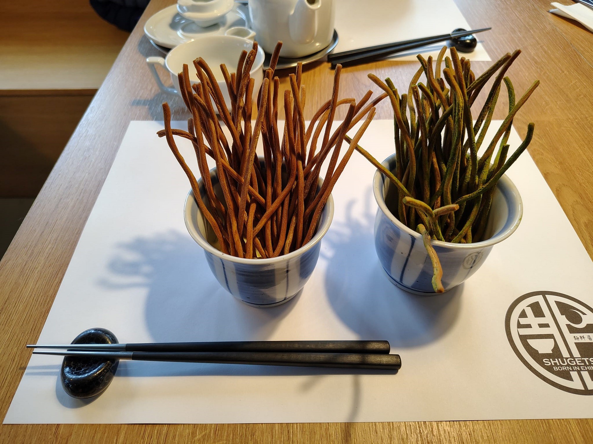 Z tých hrubých „tsukemenových“ vyčarujú i prejedlo v podobe Chrumkavých rezancov, ktoré na pohľad pripomínajú naše soletky, sú však oveľa lepšie, a iste aj zdravšie. Namáčali sme si ich do dipu pripraveného z pasty miso (5,60 €) a potom do krémovej japonskej majonézy (4,90 €), to bola ďalšia verzia tohto predjedla. Obe mali veľmi zaujímavú, pre nás novú chuť, vieme si ich predstaviť aj k vínu.