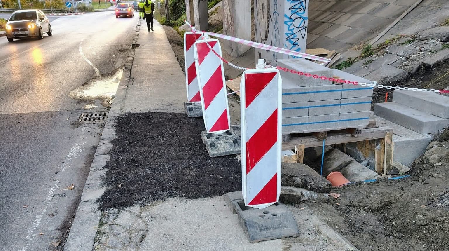 Podvečer pri opätovnej kontrole boli už práce natoľko ukončené, že bol umožnený cez úsek bezpečný prechod chodcov.