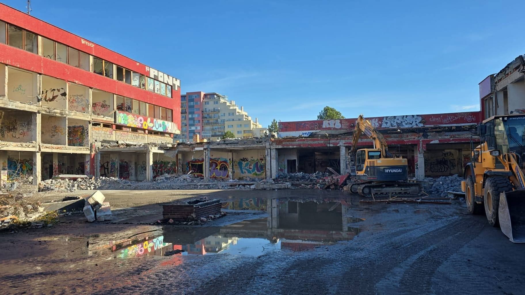 Vlastník skeletu a pozemkov pod ním má vydané platné búracie povolenie. „Práce sa spustili po vyriešení technických otázok so spoločnosťou Slovak Telekom, ktorá mala v budove umiestnené zariadenia ako vecné bremeno,“ dodala Marcinátová. Dodala, že búracie práce sa realizujú zo strany Saratovskej ulice, pričom pokračovať budú podľa schváleného postupu.
