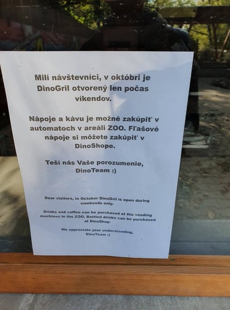 Lenka s dvoma dcérkami - jednou prváčkou, ktorá navštevuje školu, kde majú dnes prázdniny, a druhou škôlkarkou chodila po zoo, no všetky bufety našla zatvorené z technických príčin. Dokonca i ten, ktorý býva otvorený vždy, teda neďaleko vchodu (predávajú tu kebaby). Zisťovali sme teda, čo sa stalo.