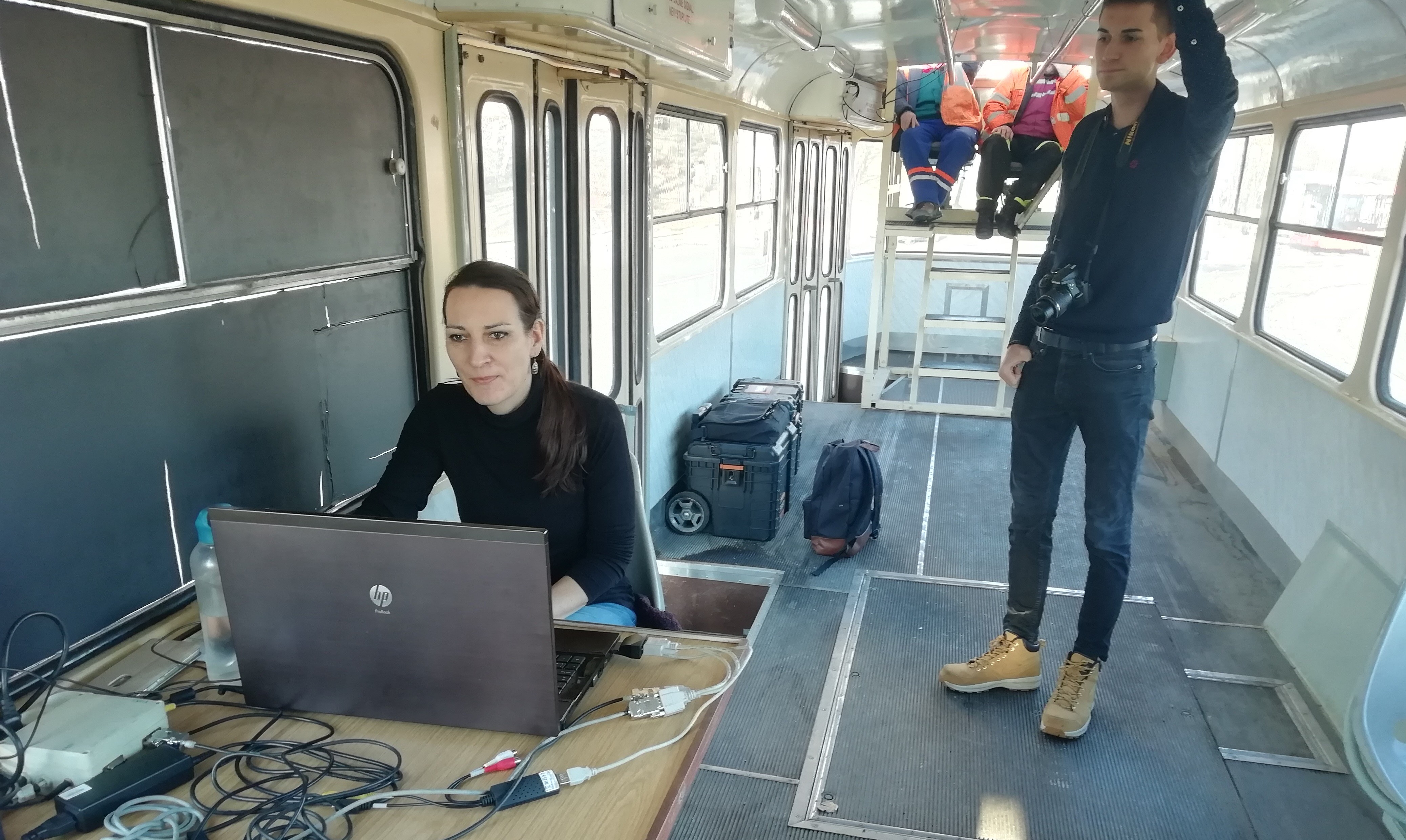 Na trať, ktorá viedla od zastávky Molecova (pri Riviére) až po obratisko na konci Dúbravky, sme vyrazili doobeda. Vozidlo je špeciálne upravené na meranie parametrov trakčného vedenia, ako napr. jeho výška nad koľajnicami, kľukatosť, sklon. Meracia električka je vybavená aj kamerou na sledovanie spolupráce medzi zberačom a trolejovým vodičom.