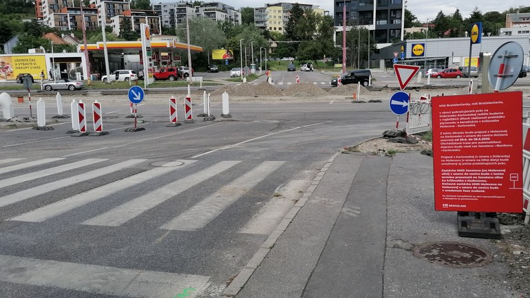 "Z dôvodu stavebných prác v križovatke Karloveská - Molecova bude od 20. do 28. júna 2020 neprejazdná Molecova ulica smerom do centra mesta," informoval Dopravný podnik Bratislava na sociálnej sieti.