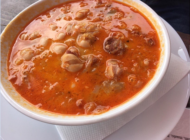 Ak sa rozhodnete pre Vrchársku polievku (3,50 €), zvážte, či si po nich objednáte ešte druhý chod. Táto hustá polievka obsahuje poriadnu dávku sýtych ingrediencií - kapustu, fazuľky, huby, údené mäso, klobásu aj kyslú smotanu. Ak ju zjete schuti celú ako my, bude vám stačiť. Bola výborná, slaná tak akurát, nie veľmi pikantná. Klobáska aj údené mäso boli kvalitné, chutné, kuchár nešetril ani hubami.