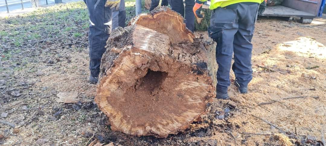 Odborníci v oblasti životného prostredia vyhodnotili tieto topole ako veľmi nebezpečné, vzhľadom k zdravotnému stavu i okoliu, v ktorom sa nachádzali. Pohľad do vnútra spíleného pňa hovorí sám za seba.