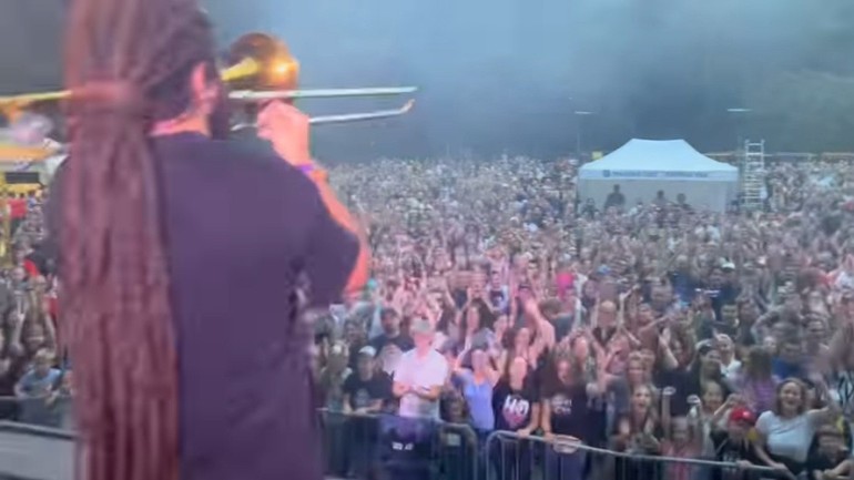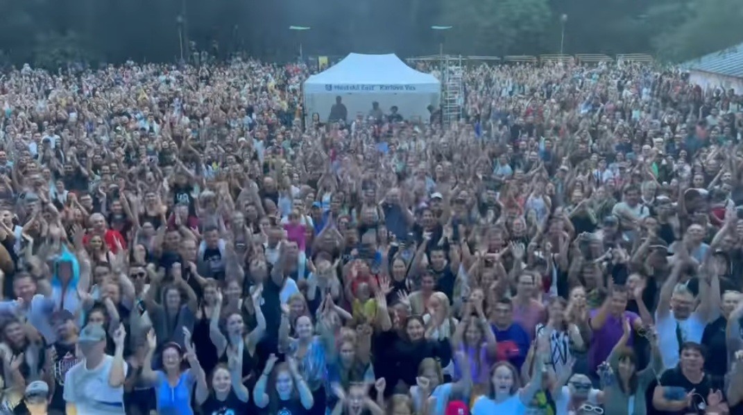 Plné Líščie údolie počas koncertu kapely Heľenine oči.